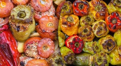 Sæt de vaskede peberfrugter i ovnen ved 160 grader, og lad dem blive bløde.