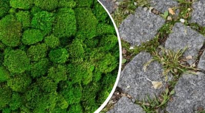 Sådan fjerner du mos fra belægningssten / Collage: My, foto depositphotos.com