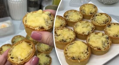 Sådan laver du varme tarteletter med kylling og svampe / Collage: My, foto: skærmbilleder fra video