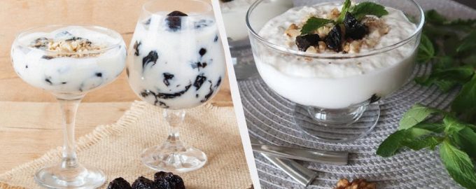 Creme fraiche med svesker og nødder – en fantastisk dessert, som det er umuligt at løsrive sig fra. Kombinationen af tæt karamel og røgfyldte tørrede frugter med forfriskende creme fraiche er blevet en klassiker inden for konfekture.