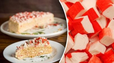 Snackkage med krabbepinde – opskrift / collage: My, foto: depositphotos.com/.